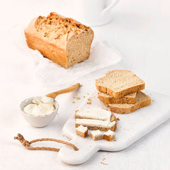 2Place the dough in a greased loaf pan (25 cm long) and let it rise in a warm place for about 60 minutes. The bread is baked on the middle rack in the preheated oven.