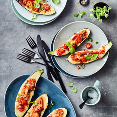 6The pizza oven zucchini can of course also be prepared vegetarian, without chorizo or salami. Cheddar is also a great alternative to mozzarella.