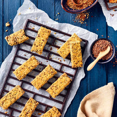 2Press onto baking paper to a size of 20 x 15 cm. Cut bars from the mixture and bake.