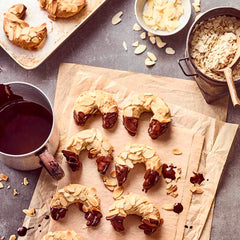 2Form small half-moons or logs, roll them in the almond leaves and then bake until golden brown. Then let it cool down.