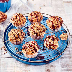 1Preheat the oven to 160°C. Place paper cases in a muffin baking tray. Place wholemeal spelled flour, muesli, baking powder and cinnamon in a mixing bowl and mix with a whisk.