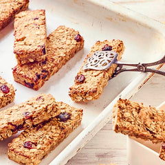 1Mix all ingredients in a bowl with a fork and knead. Using a dough scraper, spread onto a baking tray and press firmly onto an area of approx. 20 x 20 cm. Then bake, remove from the oven and cut into bars while still warm.