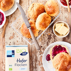 1Heat 200 ml milk to lukewarm. Pour 50 ml lukewarm milk into a bowl, crumble in the yeast and stir until smooth. Mix the flour, cologne flakes, sugar and salt in a bowl and make a well in the middle. Pour yeast milk into the middle and mix with a little flour from the edge. Cover and let rise for about 15 minutes.