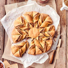 5Then place a greased springform pan around the flower and let it rise for another 30 minutes. Bake in the preheated oven. Top/bottom heat: 170 °C Circulating air: 150 °C Baking time: 20 - 25 minutes Preparation time: approx. 30 minutes (without waiting time)