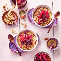 2Pour the porridge into a bowl and add the Kölln muesli, plum compote and plum wedges. Last but not least, powder cinnamon over the fruit if you like.