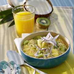 2Add chopped fruit to the mixture, sprinkle with coconut flakes and let rest for 3-4 minutes. Preparation time: approx. 10 minutes