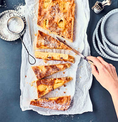 4Spread the cream icing on the apple pie and bake for another 20-25 minutes. Let the cake cool and dust with powdered sugar.