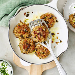 2Heat Mazola® in a pan over medium heat. Form patties and fry in the pan for 4 - 5 minutes until crispy and brown, turning several times. Serve hot. Preparation time: approx. 30 minutes Tip: Serve the patties with a delicious dip of your choice.